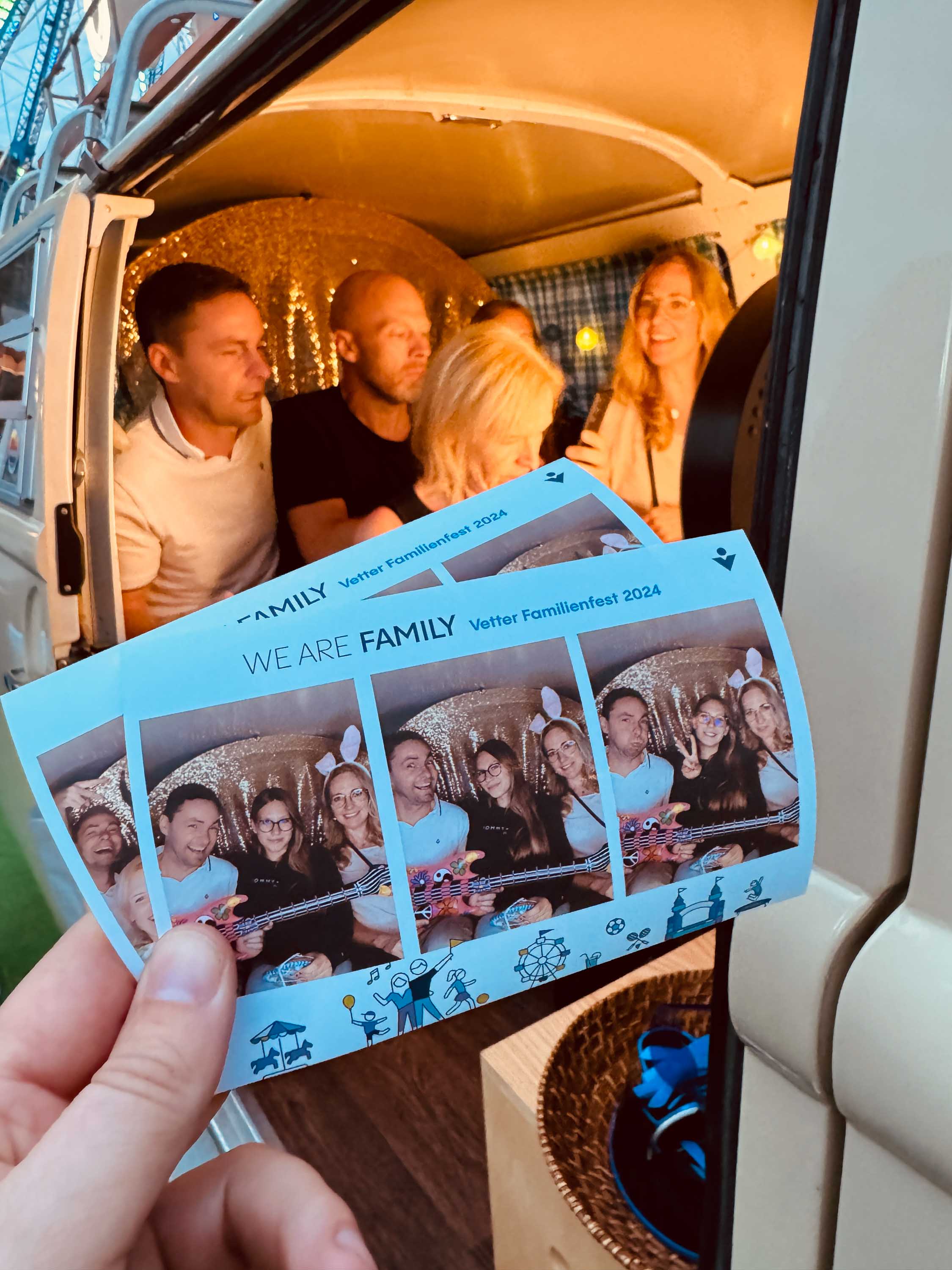 Ein ganz besonderer Moment entstand am Abend: Hinter dem Fotobulli drehte sich ein beleuchtetes Riesenrad und schuf eine spektakuläre Kulisse. Diese Kombination aus Licht, Bewegung und Emotion machte die Fotos zu etwas ganz Besonderem – und verlieh dem Event eine fast schon magische Atmosphäre.